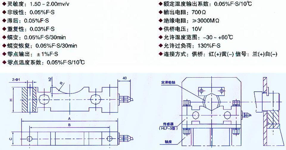 該傳感器主要安裝于定滑輪軸下,也可以用于平衡滑輪等其他形式的軸下,該傳感器具有較大接觸面,因而具有較好的穩(wěn)定性,常用于起重限制器的傳感器,是各類起重機(jī)設(shè)備安全保護(hù)裝置和自動(dòng)化控制的理想選用產(chǎn)品。咨詢型號(hào)標(biāo)注例如:“HLF-3-10t”。