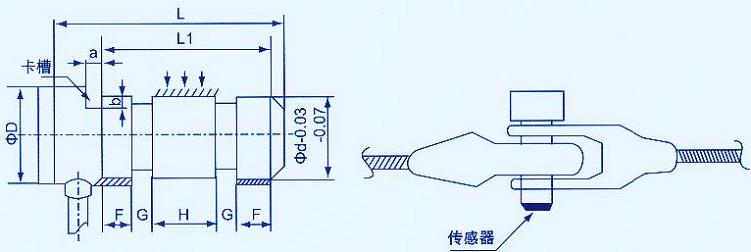 該系列傳感器可根據(jù)不同用途,方便地安裝在兩金屬結(jié)構(gòu)聯(lián)接出的掛鉤、鎖具卸扣、動滑輪(組)、定滑輪(組)、鍥形接頭、鋼索索節(jié)、船用鎖具、開式螺旋扣、拉桿頭部和叉形接頭、聯(lián)接頭、吊環(huán)、鋼輪的軸孔內(nèi)、既能起到替代原有軸的功能,又起到稱重測力傳感器的作用,從而使整個稱重測力控制系統(tǒng)的機械部件大大減化,因而其應用前景非常廣闊。